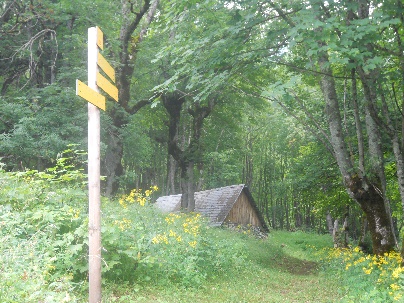 le hameau abandonné de Bon Mollard, (à 5 mn) avec sa fontaine encore active. Le chemin principal continue vers les ravins et la forêt domaniale de Miolans. Il franchit le torrent de Miolans par une solide passerelle et devient un sentier qui à l’altitude 1180 se sépare en deux (poteau indicateur) : prendre le sentier de gauche qui grimpe en jolis lacets à travers d’anciens prés de pâture, jusqu’au chalet, encore debout, du Mont.