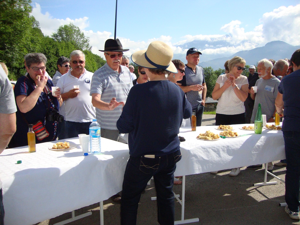 La pluie, parfois diluvienne, de dimanche a quelque peu gâché la fête pourtant si bien commencée la veille. L’exposition de véhicules anciens n’a ainsi regroupé qu’une vingtaine de voitures. Malgré tout, la restauration sur place avec la polenta et les diots préparés par les frères Ricchiero de St Etienne de Cuines a connu un franc succès, le repas étant servi dans la salle des fêtes. L’après-midi, à la faveur d’une éclaircie, les spectateurs arrivés en nombre ont pu admirer les R8 Gordini, Fiat Abarth, Dauphine, 203 et autres, échangeant des anecdotes et des impressions autour des très beaux modèles exposés. Olivier l’animateur et le duo « Michel Pavaillant » ont donné une belle impulsion à la fête, entre délire et fou-rires. La satisfaction du public a été la récompense finale pour toute l’équipe de bénévoles, qui faisant fi de la pluie, a proposé un évènement convivial et fort sympathique.
